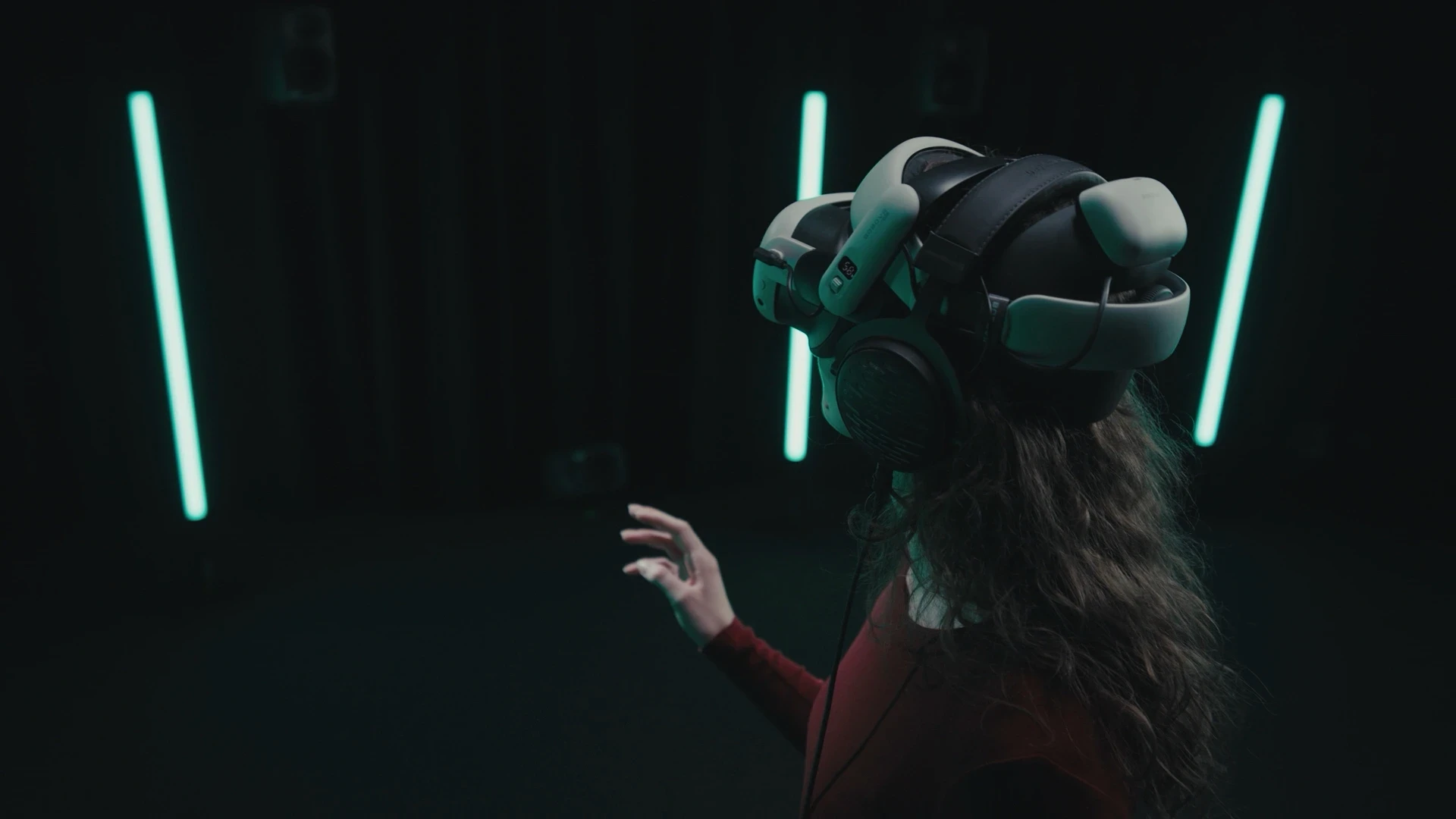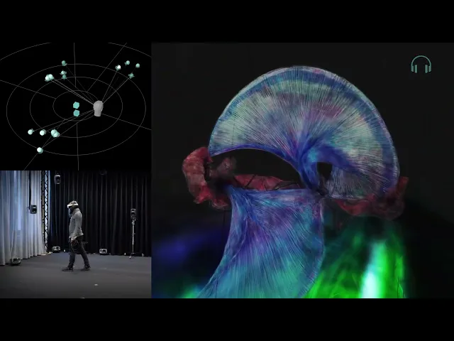 Augmented Ubiquity is more than a technical demonstration. The full artwork combines the volumetric visual capture with a spatial audio composition by Lou Kilger, designed from the outset to function from any listening position in three-dimensional space, and a dance performance by Ria Rehfuß developed specifically for the confined dimensions of the scanner booth. Dynamic binaural audio spatialization using SPAT Revolution adapts continuously to the viewer's head movements, giving the experience six full degrees of freedom in both vision and sound.