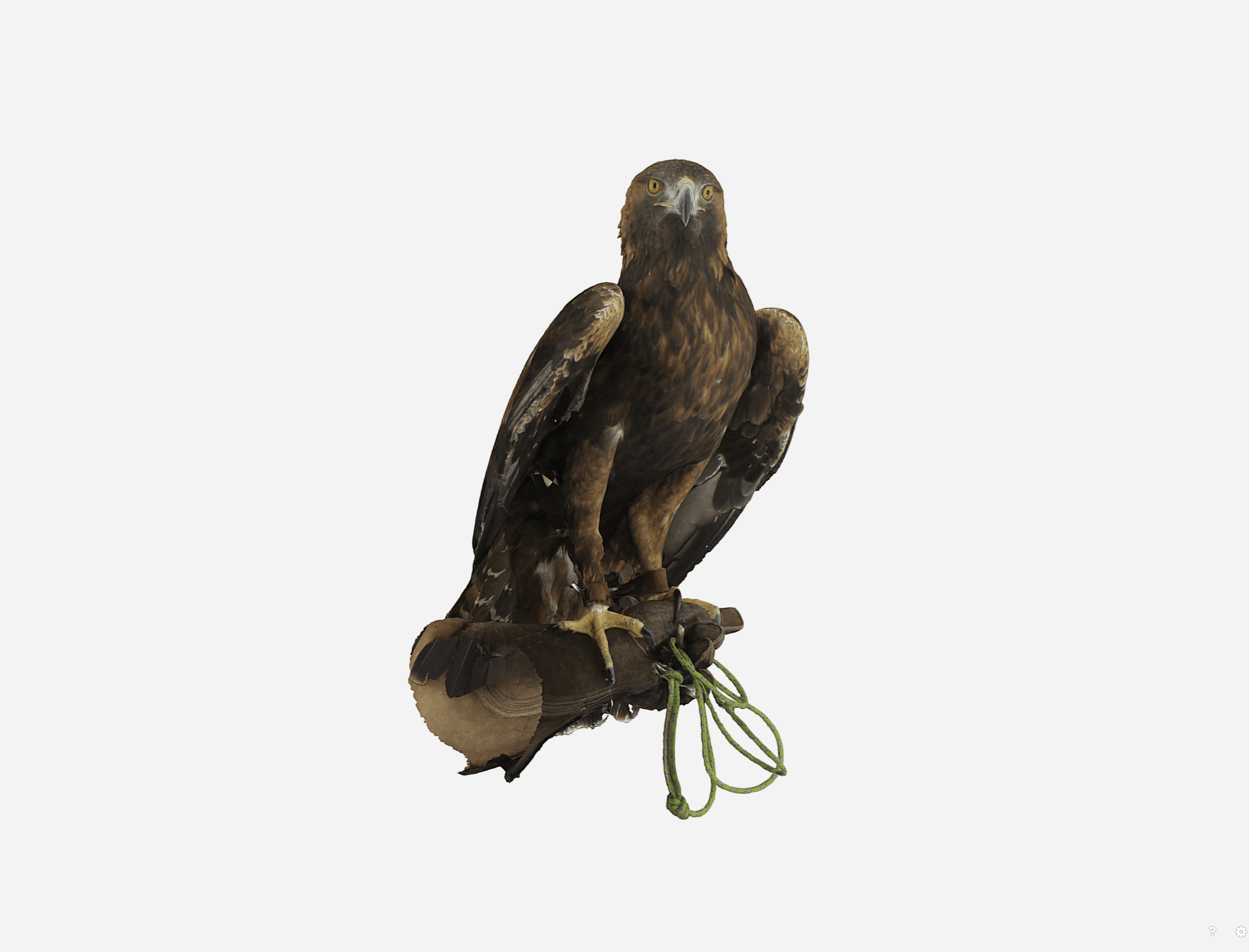 The eagle was scanned in the NEO full-body scanner, which captures the subject in under a second using a simultaneous flash across all cameras — the only practical way to produce a sharp 3D scan of a live animal. The feather detail, talons, jesses and leash are all reproduced accurately in the model.