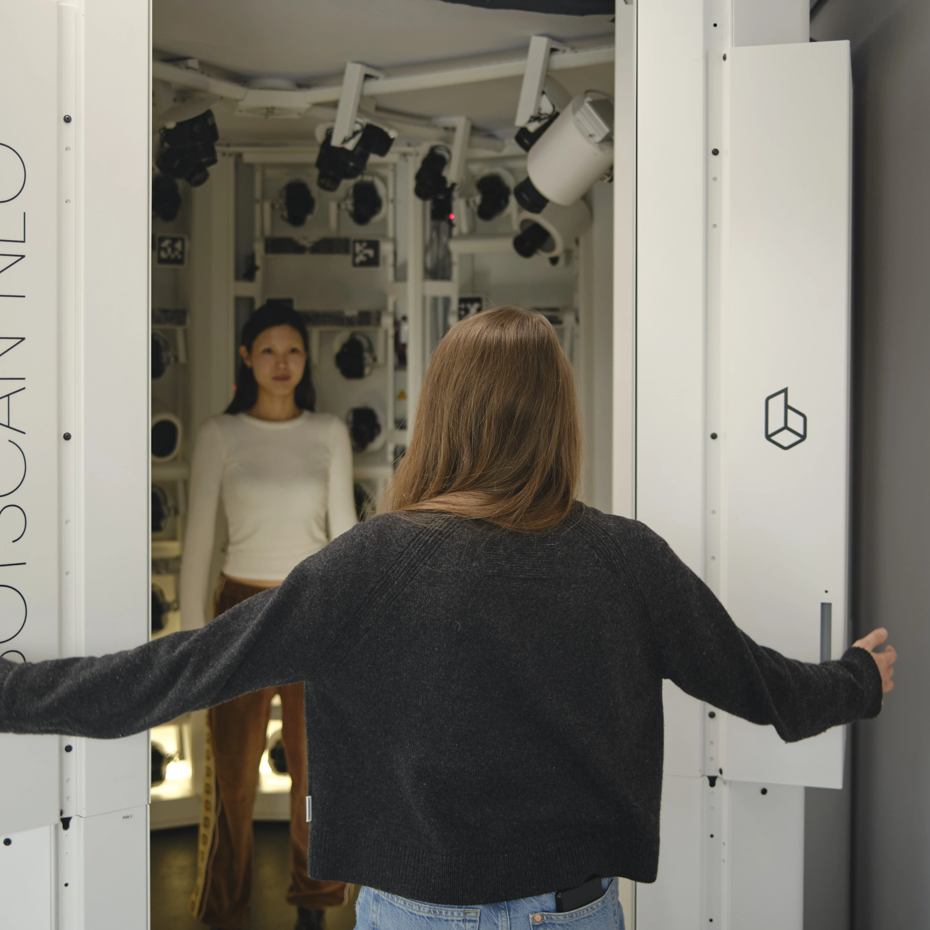 The subject was captured in the NEO full-body scanner in under a second, with camera positions aligned in RealityScan and the Gaussian splat trained in Postshot. The training space was cropped tightly around the subject before processing to concentrate the point budget on the scan itself. The subject was captured mid-hair flip — a detail that highlights how Gaussian splatting handles thin, semi-transparent geometry that mesh-based reconstruction methods typically struggle with.